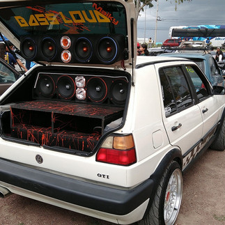 Iniciamos con una transmisión en vivo para Refaccionaria Mario; algunos de los seguidores de la página preguntaban por los Vochos. Es verdad, no había muchos, pero más tarde llegaron unos muy buenos, como este con su par de subwoofers Kicker L7 de 15 pulgadas alimentados por un amplificador Rock Series de 3 mil Watts RMS. ¡Sonaba tremendo!