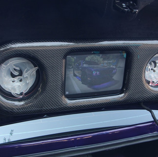 Para mayor comodidad, se fabricó una base para el control del sistema de suspensión Air Lift, y se mandaron a pedir la cubierta de la consola central en fibra de carbono y la palanca de velocidades.