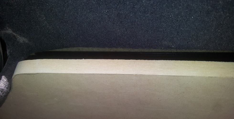 44 y 45. Colocamos las piezas como van a quedar… vemos que entre el MDF y la alfombra del auto existen huecos que debemos tapar.