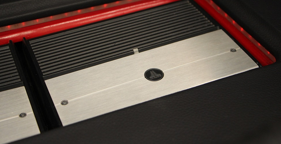 En el piso de la cajuela se fabricó un panel a la medida para la instalación de 2 amplificadores JL Audio; un Clase D monoblock modelo XD1000/1v2 capaz de entregar hasta 1,000 Watts de potencia RMS, éste se encarga de alimentar al par de subwoofers de 10 pulgadas. El segundo amplificador es un JL Audio modelo XD600/1v2, éste se conectó a dos sets de medios de 2 vías JL Audio modelo C3-650 con medios de 6.5 pulgadas y un manejo de 150 Watts RMS y 300 Watts máximos; los dos sets se instalaron en los lugares originales de las puertas.